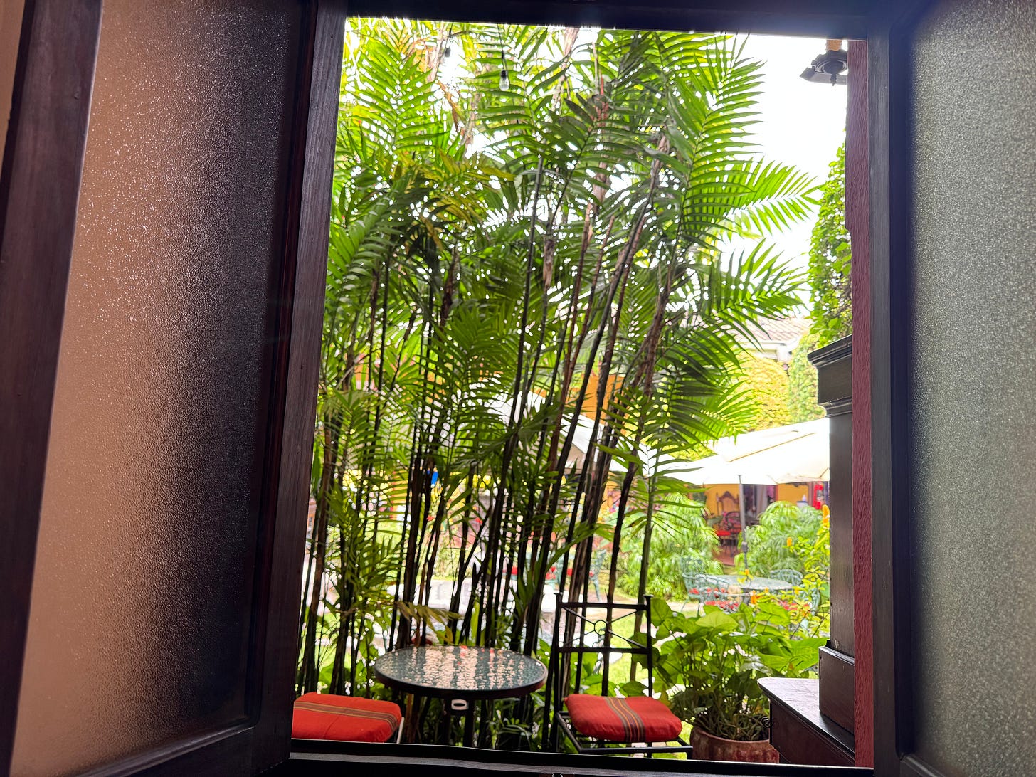 The next morning as I stepped out of the hotel I was surrounded by three volcanoes: Agua, Fuego, and Acatenango. Fuego is still an active volcano. And surrounding the volcanoes there was a blanket of greenery. So many plants, trees, birds, animals, and insects, alive and thriving in those luscious forests. It was also cooler in Antigua than in Santa Tecla. After taking a long walk and eating a big lunch we all came back to the hotel. I decided to stop fretting over the things I couldn’t change and instead take in what was available to me at the moment. I lay on my bed looking out the window that had a view of the courtyard with all its beautiful plants and flowers. When I was exhausted from working as a teacher what is that I had asked for? Time. And now instead of seeing it as a bad thing that I didn’t have a partner to go explore Antigua with at night, I took the time available as a gift. I opened Sastun and immediately realized that I was living my dream and was blessed. I had no interruptions to read the best book I have read this year and it all took place in Central America with parts taking place in Guatemala. I was living inside the book. When I stopped fretting my sleep returned and I went to sleep with the sound of the water fountain falling in the courtyard.